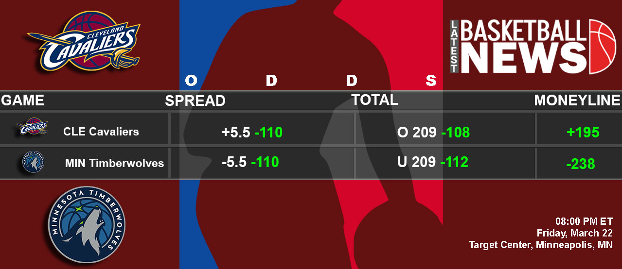 CLEVELAND CAVALIERS VS. MINNESOTA TIMBERWOLVES ODDS & PREDICTIONS FOR MARCH 22, 2024
