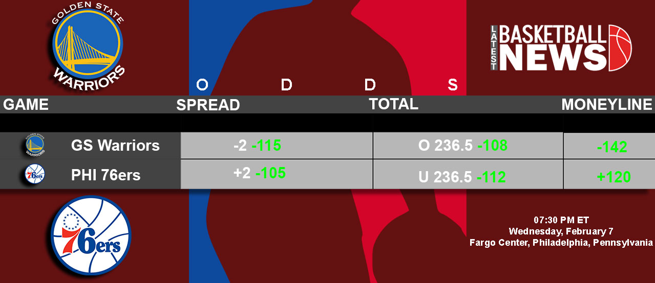 GOLDEN STATE WARRIORS VS. PHILADELPHIA 76ERS ODDS AND PREDICTIONS FOR FEBRUARY 7, 2024