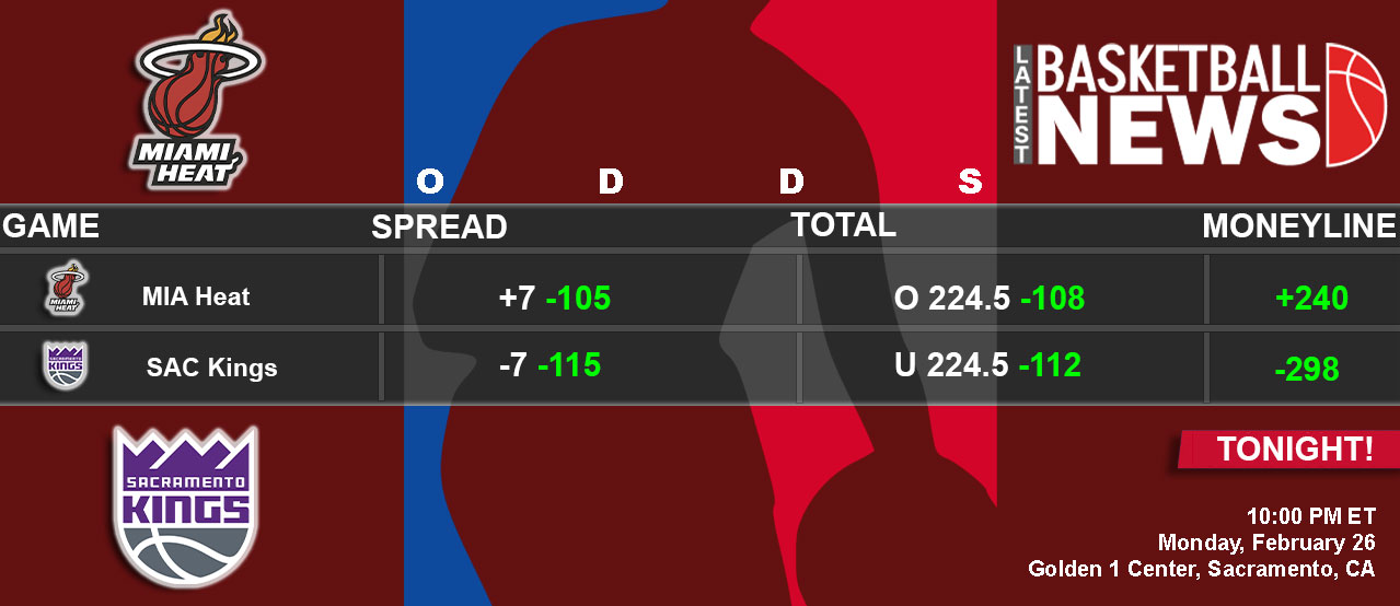 MIAMI HEAT VS. SACRAMENTO KINGS ODDS & PREDICTIONS FOR FEBRUARY 26, 2024