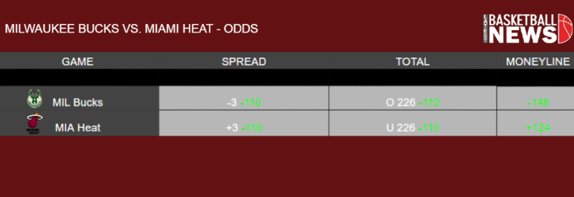Milwaukee Bucks vs. Miami Heat Odds (via DraftKings)