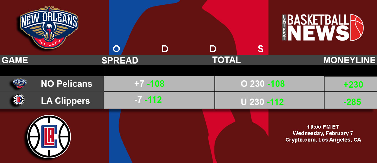 NEW ORLEANS PELICANS VS. LA CLIPPERS ODDS AND PREDICTIONS FOR FEBRUARY 7, 2024